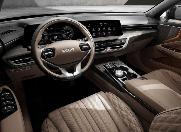 打开车门的那一瞬间,或许大多数人都不太敢相信这是起亚的杰作,但这一次起亚K8真的是打破了人们对于起亚的看法,12英寸的双屏联动设计、四幅式多功能方向盘、旋钮式的换挡以及众多木纹饰板的加入,所呈现出来的奢华感相当的浓厚,在门板和座椅处均采用了菱形和真皮的包裹,就小编个人观点来看,这样的设计完全能够与BBA不相上下。