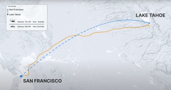 ▲搭乘eVTOL从旧金山到太浩湖只需要61分钟