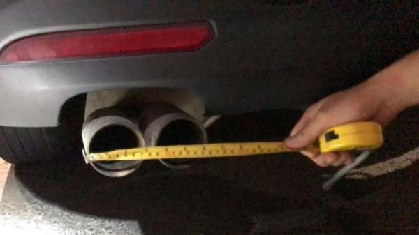 蔡某坚持车子没有改装,还主动带着交警来到车尾查看。然而一蹲下,车子的“秘密”立即暴露无遗,只见排气管的管口比正常尺寸要粗不少,排气管尾段上还能看到明显的焊接点。▼