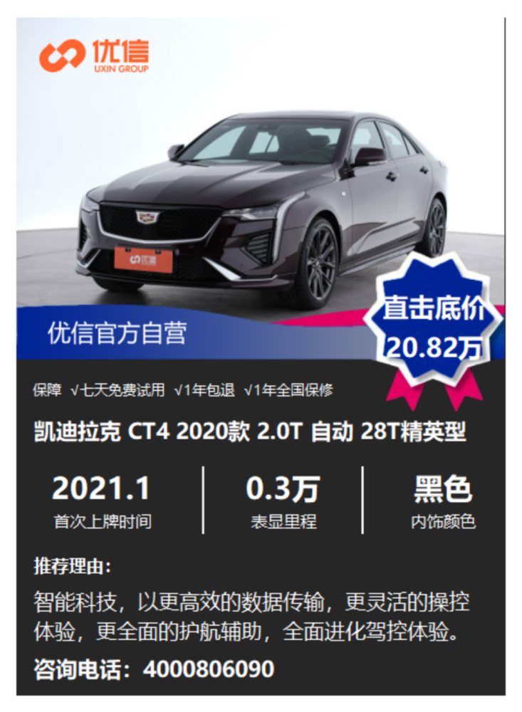 目前这款车市面上二手的不多,因为买了就卖赔的太多,优信推荐对这款车如果是2020年1万公里左右,20万左右,这款2021年初,3000公里首保还没做,贵了8000元还算良心价儿,配置低了点,要是高配就占便宜了。