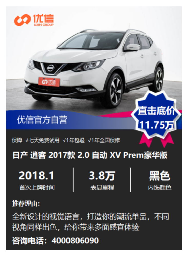 优信二手车推出小胖哥专属全国私人定制二手车服务,目前仅限于环保国6A以内城市车源支持,西安小伙伴们优先,全国范围逐步发展中,每周推荐,欢迎留言!