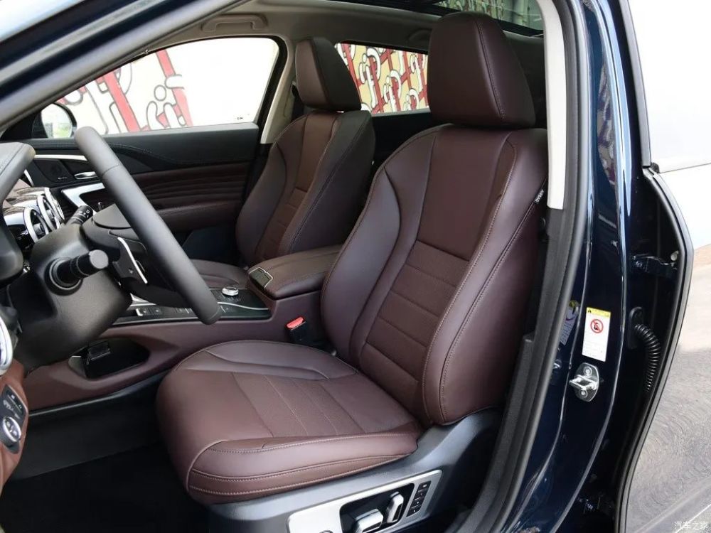 VV7座椅的柔软度不错,包裹感比较好。低配车型配备的是带有高度调节的仿皮座椅,而高配车型则使用的是真皮材质包裹,全系车型都搭载了主/副驾驶座电动调节及前排座椅加热功能。后排座椅的舒适性同样表现不错,坐垫宽大厚实用料十足,对腿部的支撑非常充分,填充物也较为柔软。后备厢表现中规中矩,空间很规整但尺寸略小。