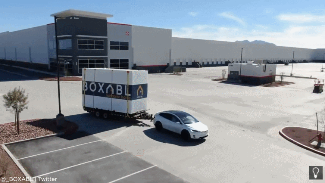 住在Boxabl casita,搬家需要几步?很简单,如果马斯特厌倦了周围的景观与生活,便可以将小屋“折叠”,形成约 2.6 米宽的长方体,最后由一辆特斯拉运送至其他区域,重新安家。