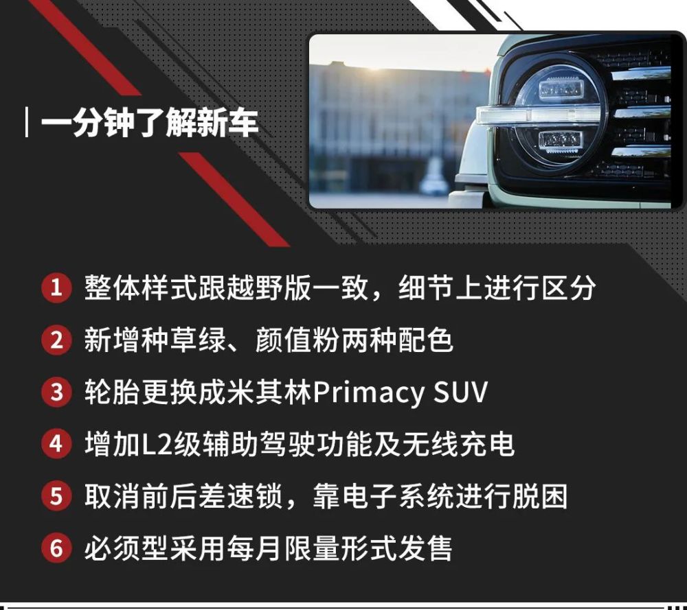 坦克300城市版“必须型”采用限定方式发售,7月24日0点开启的首批预订将限量300台,未来每月19日上午10点在坦克TANK APP尖叫日上线,限量抢订,订完为止。