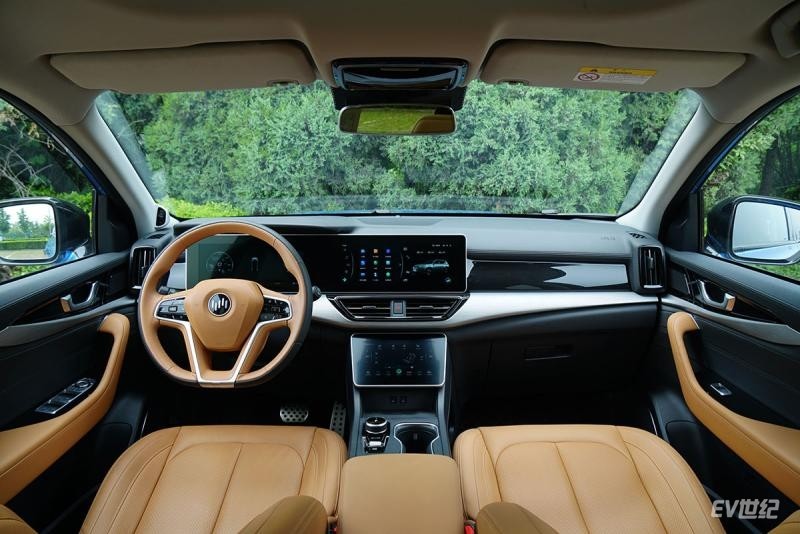 内饰方面,威马W6相比EX5和EX6有较大改变,由原来的翼展式T字布局变为时下流行的双联大屏布局。此外,之前车型标配的i-Control中控面板,由额外的第三块触屏替代。中高配车型还使用了丹霞棕配色,在车门扶手、座椅和方向盘上大量使用了棕黄色皮质包覆,提升了车内视觉的豪华感和品质感。
