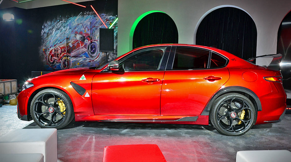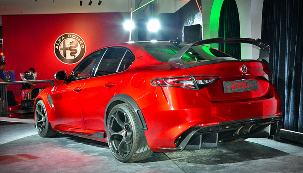 该车型就是阿尔法罗密欧Giulia GTAm,看名字就知道这款车型是基于普通版本的阿尔法罗密欧Giulia打造而来,后面的英文字母GTAm就不得了了,代表着赛道级别高性能。其实从整部车的外观也能够看出一些端倪,这很显然不是普通的家用车,很多细节部位有明显的改装痕迹,比如车头大尺寸碳纤维空气动力学套件,尾部还有超大面积固定式碳纤维尾翼,搭配中置双出排气管。