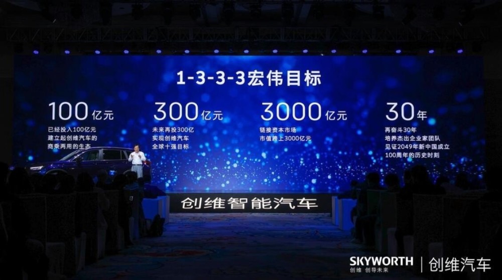 空谈的目标还有很多,黄宏生还公布了创维汽车的“1333战略”:过去十年投入100亿元;未来再投入300亿元;未来十年,创维汽车将实现资本市场链接,打造市值3000亿元的资本企业;黄宏生希望自己再奋斗三十年。