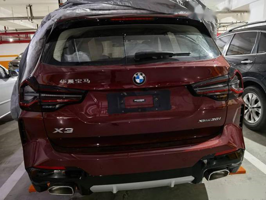 【新款宝马X3实车曝光】近日,网上曝光了一组新款宝马X3的实车谍照,作为中期改款车型,新款宝马X3对内外设计均进行了一定升级。其中前脸将双肾式进气格栅改为连体式设计,配合上造型更狭长的LED大灯,拉伸横向视觉效果,此外双“L”型日间行车灯的加入,科技感也得到显著提升。下方三段式保险杠造型比现款更加犀利,进一步提升了运动气息。尾部包围与前脸一样都升级更激进的设计,同时尾灯组也进行了不小的调整,其中造型更为立体,并带有熏黑风格,进一步提升了个性和辨识度。车身尺寸方面,新车的长宽高分别为4737/1891/1689mm,轴距达到2864mm,车身长度受外观包覆件的影响,加长了20mm,其余保持不变。另外,新车还将推出曜夜版车型,对车身多处细节进行熏黑处理。内饰采用了向驾驶员侧倾斜的设计,并且中控屏升级为12.3英寸,空调区域也有所改变,下方电子挡杆也改为与3系相同的样式,质感得到提升。动力上将会继续搭载2.0T发动机,根据车型的不同分为低中高三种功率。据悉,新车将于8月27日开幕的成都车展亮相,并有望于9月上市。