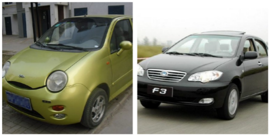 左:奇瑞QQ 右:比亚迪F3