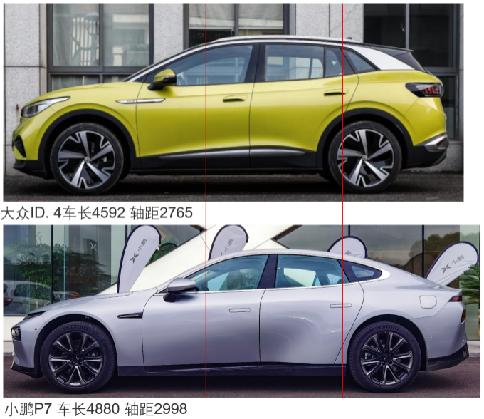 咱们做一个不太恰当但很直观的极端对比:以肉眼可见的方向盘位置与后排座椅位置作比较,我们可以发现车长4880的P7空间远小于车长4592的大众ID.4。大众汽车“小车大空间的实用性”特征,在过去几十年把国人吃得死死的。初出茅庐的小鹏P7,明知“自主品牌空间小是原罪”的道理,却敢反其道而行之。