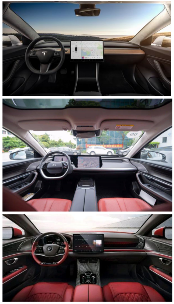 从上至下:Model 3、P7、汉的内饰