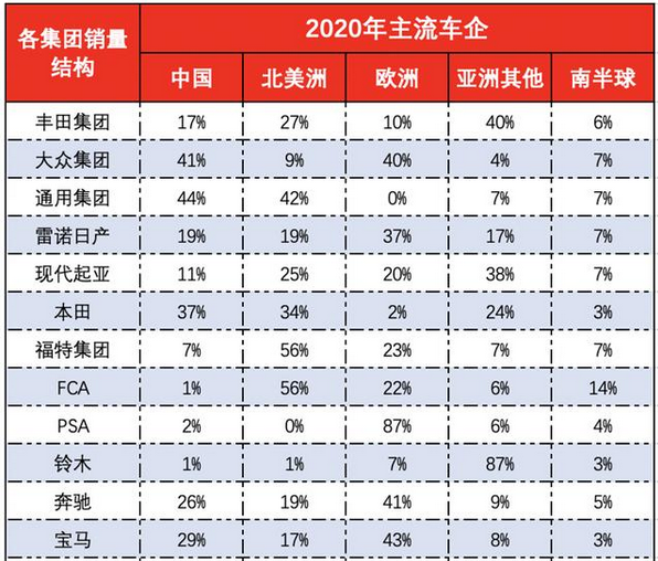 而丰田+雷克萨斯2020年在欧洲的销量为99.3万辆,在北美市场,丰田和雷克萨斯共售出211万辆汽车。在亚洲其他地区,包括日本本土、东南亚等地区,丰田卖出了大约381万辆车。从销量分布来看,丰田明显比大众汽车更加均衡。2020年,大众赢了中国,丰田赢了世界。