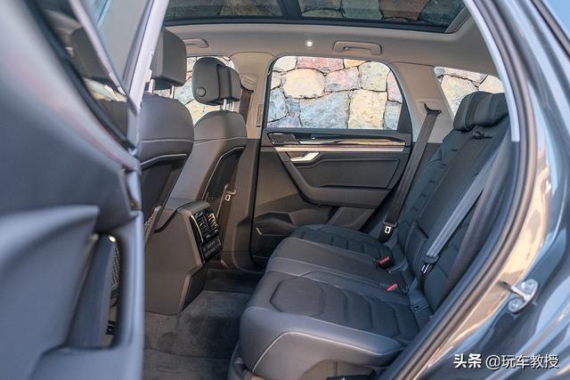 所以途锐的后排算是一个弱项,整体的空间表现只能是够用的水平,坐垫长度稍微偏短,对大腿的承托不够到位,而且扶手处只有两个杯架,后排乘员的“权限”不高。