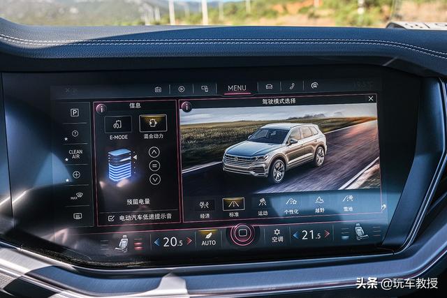 整套系统非常简单,大众就是希望途锐eHybrid的混动系统不过多去干预驾驶者,所以它在中控只有一个小界面,甚至都没有动能回收的强度调节。
