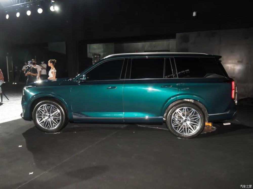 新车的侧面造型流畅而简约,悬浮式车顶配合平直的线条十分大气,混动版本车型还使用了隐藏式的门把手,档次感就营造出来了。21英寸的花瓣式轮圈在视觉效果上气势很足,轮胎搭配的是米其林PS4 SUV,轮胎规格为265/45 R21。