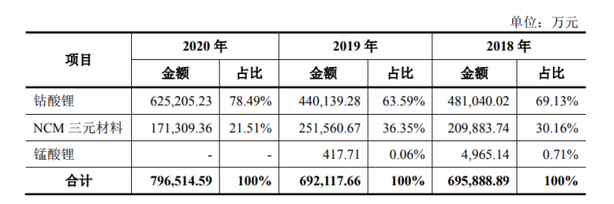 而同期上市的厦钨新能作为上市公司厦门钨业分拆上市的子公司,前身为厦门钨业下属的电池材料事业部,主营产品有钴酸锂、镍钴锰三元材料等,而主要收入来源也是分为两块——3C锂电和动力电池。