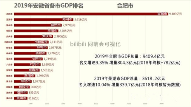 2019年安徽省各市GDP排名(来源:哔哩哔哩) 2019年安徽省各市GDP排名(来源:哔哩哔哩)