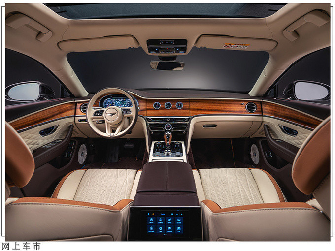 内饰方面,宾利在插电混动版遨世版上大量使用了全新可持续材质,座椅背部和头枕处全部选用英国羊毛粗花呢打造,同时,宾利在座椅上引入全新立体菱形刺绣工艺,还具有专属定制的纱线颜色,进一步彰显该车的气韵。仪表板上,新车采用带有开孔质地的寇阿相思木(Koa)打造,其延伸至前车门。中控台饰以光亮夺目的简约亚麻钢琴(Piano Linen)面板,与三色皮革内饰设计相辅相成,将精致氛围提升至全新高度。