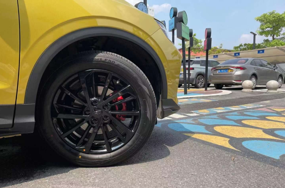 车身侧面新车和现款车型差异不大,硬朗的车身腰线和轮眉上方的折线处理相得益彰,同时双色车身,悬浮式车顶,运动包围,仿太纤维后视镜,熏黑大轮毂以及红色的刹车卡钳,将整车的运动性能一次拉满。