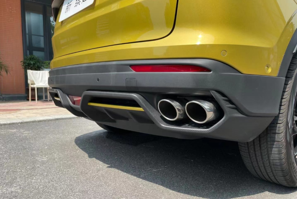 尾灯组造型不变,但在边缘进行了熏黑处理,中间的镀铬饰条也换成了“高亮黑”配图,搭配亮黄色的车漆,更加彰显新车的个性。双边共四出的炮筒式尾喉也不逞多让,搭配底部扰流扩散装置,为整车带来了极强的运动气息。