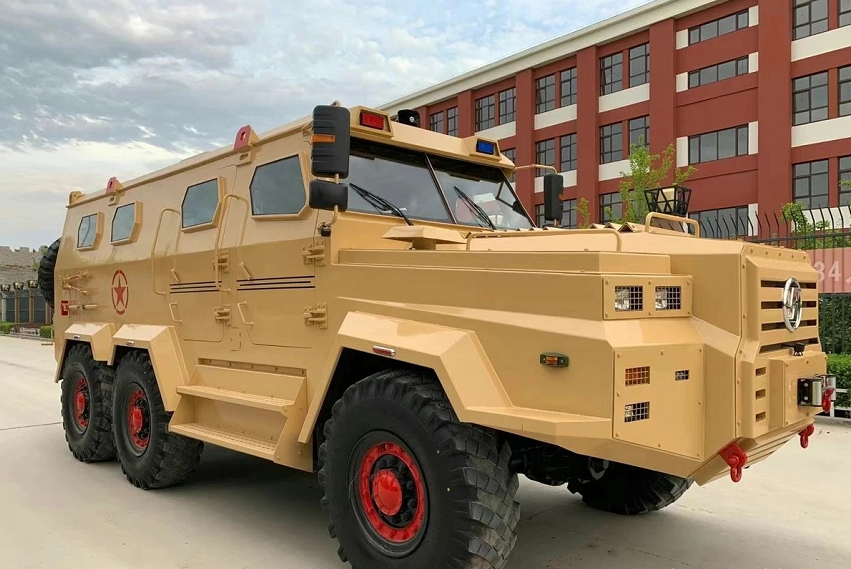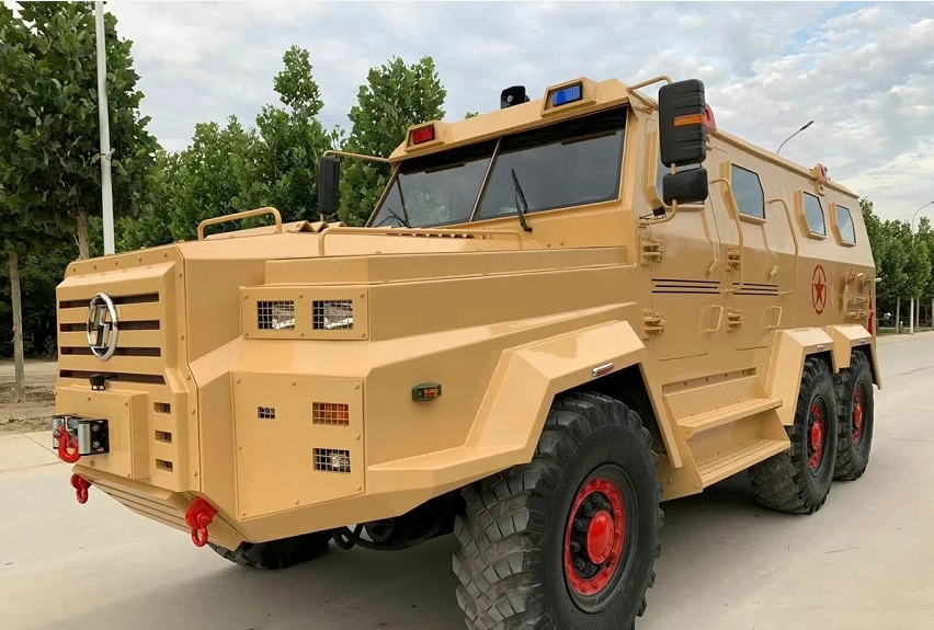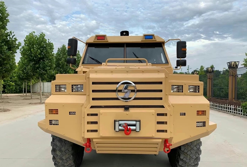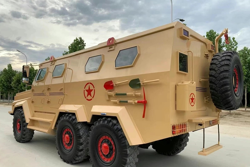 车身采用特种钢材包裹,防弹外壳,前置绞盘,结构刚度大,底盘稳重,备胎全新,轮胎刚换过没多久,侧面造型有点像6驱的奔驰G级,外观造型很硬派,行驶在路上安全性极高,完全不用担心被追尾,除了货车外基本上没有对手,倘若小车追尾上它也只能自讨苦吃。