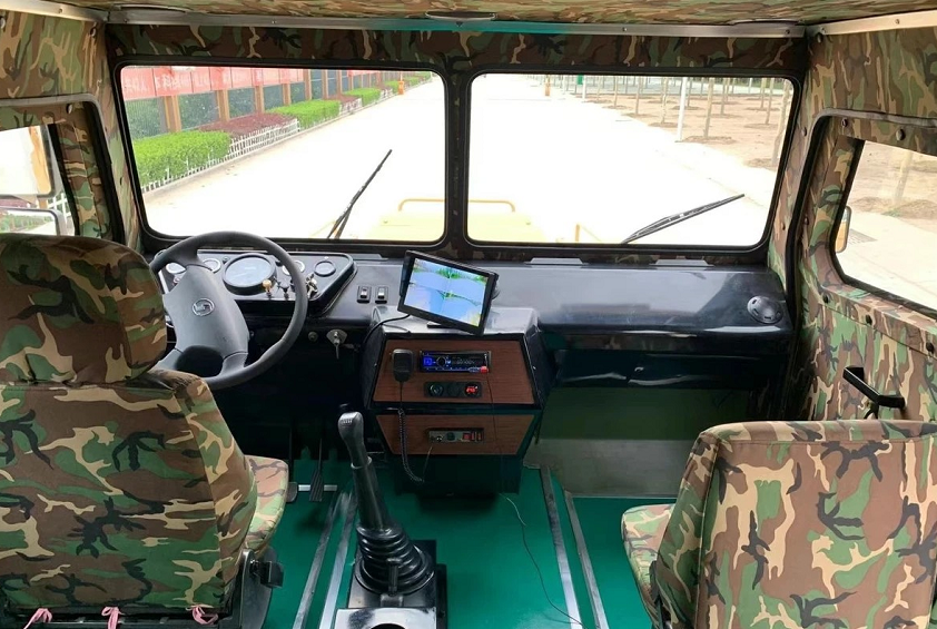 再来看这辆陕汽六驱防暴车的车内部门,车内很新几乎无磨损痕迹, 中置空调系统,车内还有专用的驱逐喊话警报系统,在厂区内行驶非常气派,不过一般来说这种车不能上路,具体原因想必广大车友都懂,尽管它很贵。
