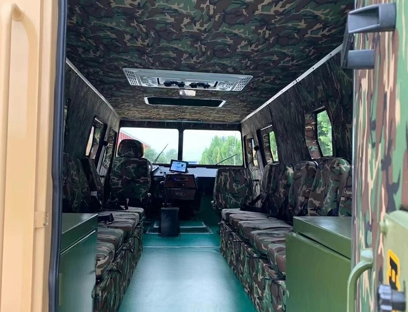 车厢里座位简洁,视觉效果很好,我们也能想象到这辆车服役时候的样子,全副武装,特种车辆自带气场,盛气凌人,对比东风猛士或者悍马H1也毫不逊色,可惜价格太高,我们一般人买不起,即使我们想尽一份微薄之力也无能为力。