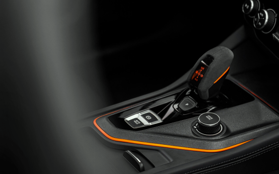 带有攻击性的风姿,内饰也是如此。大量的软性材质布满了整个座舱,以黑色为主的厚重格调,以及在方向盘、空调出风口、换挡拨片、档把周围以及座椅边缘所带来的橙色点缀,整体看上去成为其运动风格的必然选择。此外,同级少有配置的全液晶仪表盘、内嵌式的中控多媒体大屏以及三辐式多功能运动方向盘的使用,使其科技感与功能性顺势倍增。