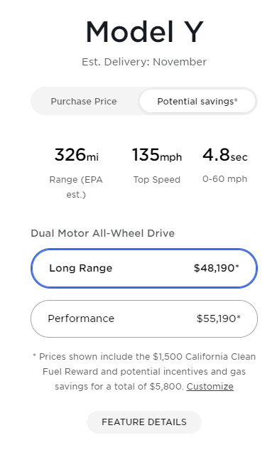 目前,Model Y标准续航后驱版,在美国市场的时候加为4.849万美元(折合人民币31.31万元),而国内售价则为29.184万元起,意味着特斯拉Model 3和Model Y,中国都是全球最便宜的市场。