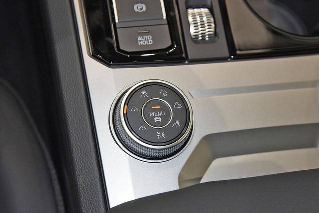 在挡把后方双旋钮设计也是经典的设计,左边为驾驶模式选择按钮,右边是空气悬挂高度控制按钮,挡把也更新为电子式挡把,P挡在左侧面按钮处,操作和奥迪车型基本一致。