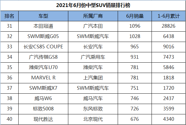 注:本数据仅统计国产及合资车型,进口车未被列入榜单,敬请谅解!