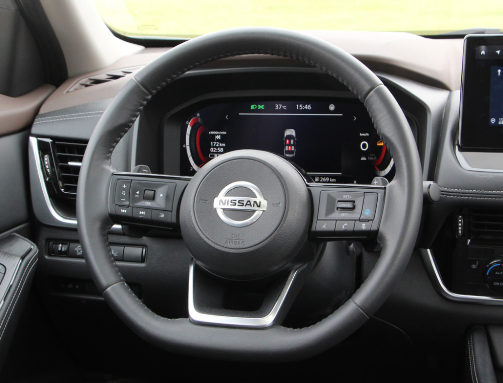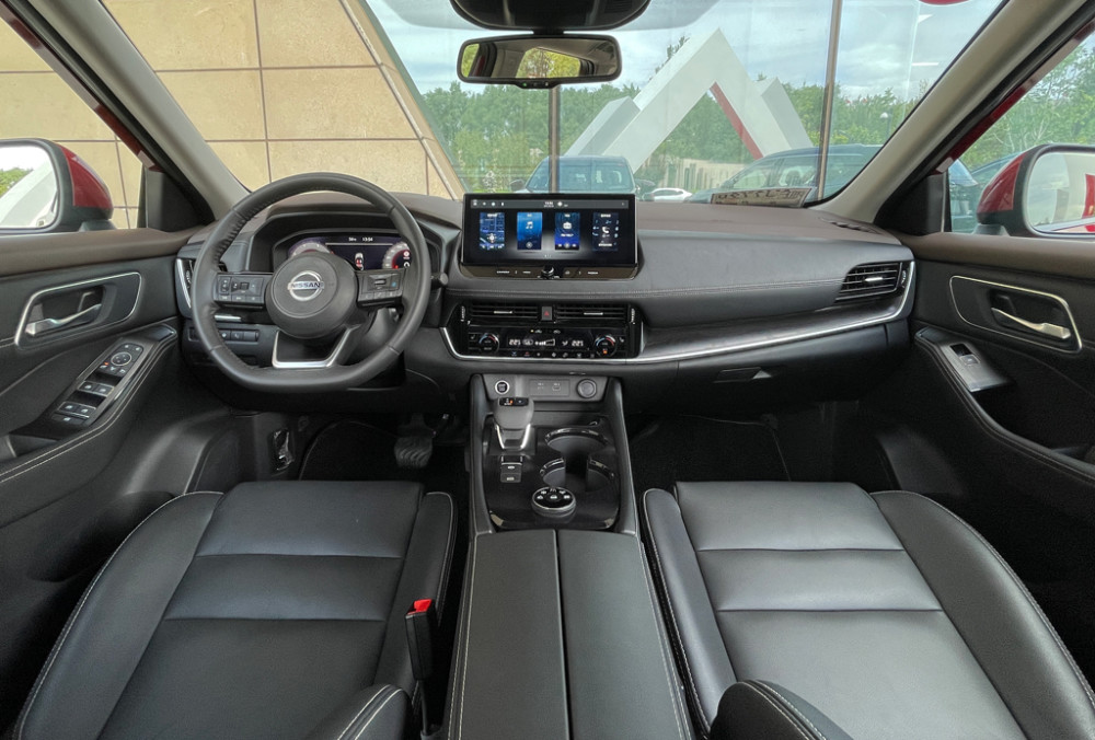 内饰部分,全新奇骏依旧采用指针式仪表盘与液晶屏搭配的组合,三辐式多功能方向盘看上去更加具有科技感;中控多媒体显示屏采用悬浮式设计,下方还配有触摸式与物理按键组合的功能控制区域,搭配电子换挡机构和旋钮式的四驱模式选择,让新车的科技感得到了进一步的展现。