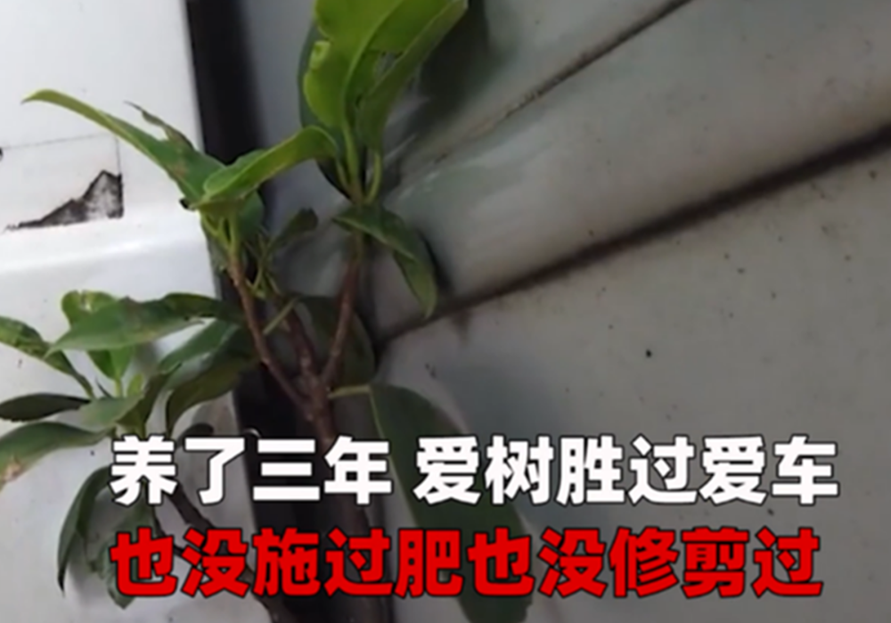 令车主也没想到的是,在他精心呵护了3年之后,这颗长在车门缝隙的小树苗居然长成了三十公分。车主这种小心呵护的模样,让朋友看到甚至感觉好笑。因为在朋友看来,这样一个小树苗在路边经常可以看到,有什么可照顾的。甚至他还对车主说,自己想要将其拔掉。
