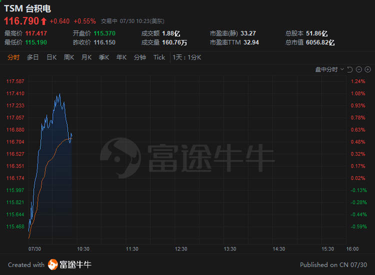 富途资讯7月30日消息,美股三大股指下跌,道指跌0.24%,标普500指数跌0.41%,纳指跌0.58%。