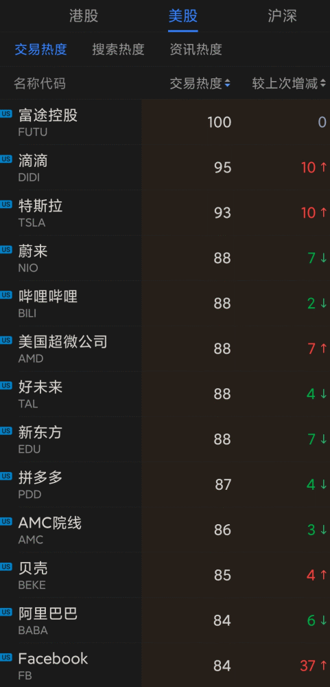 据富途牛牛美股交易热度榜显示,排名靠前的中概股包括,富途、滴滴、蔚来、哔哩哔哩、好未来、新东方、拼多多等。