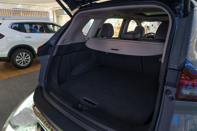 后备厢空间是这级别车型的重点,内部整体平整,深度足够,近900L,一家人出行的行李没问题,放倒第二排座椅后达到1300L,后备厢开口大,同时高配车型还带有电动尾门和脚踢感应开启。与海外版车型不同的是,海外版车型后备箱隔板下是储物格,国产车型隔板下方配备胃全尺寸备胎,
