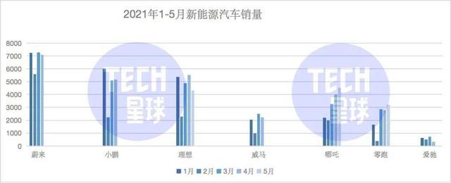 简单对比一下,一季度,蔚来卖了20060辆,小鹏卖了13340辆,理想卖出了12579辆;就算是同处第一梯队的战友哪吒汽车也卖出了7443辆,去年还只有1000多销量的零跑汽车也卖出了10019辆。