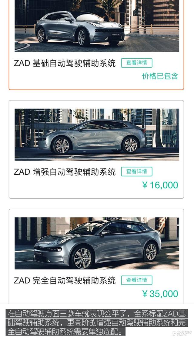 极氪001在自动驾驶版块中,可以说是特斯拉的镜像,不仅推出了三个等级的驾驶辅助系统,并且自动驾驶硬件是所有车都一致的,你付费只是用于解锁软件功能。