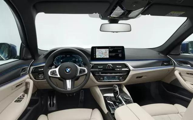而非运动版的豪华型,也就是入门版5系车型前脸和车尾也都做出了改变。前脸下方的进气格栅增加了方块格的格栅设计,并且中间部分加装了摄像头,应该是用于自适应巡航等。车尾相较于运动车型并没有太大差别,只不过排气造型尺寸和黑色包围套件的尺寸比起运动型要小一些。