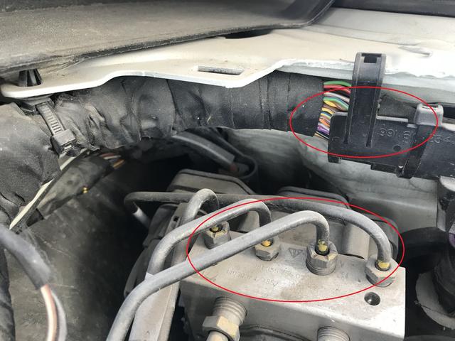 线束整洁,没有火烧发黑痕迹,abs制动分泵没有渗漏和拆卸痕迹。