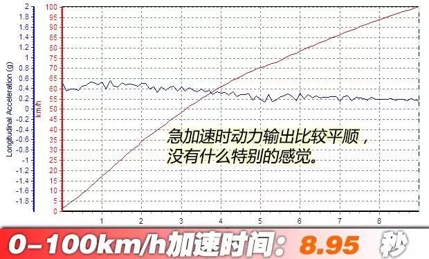 全新宝来的车身稳定系统没有按键关闭,加上起步阶段变速箱会自我保护,所以起步比较平淡。中后段加速顺畅,加速到100km/h最终用时8.95秒,在同级别中已经足够快。