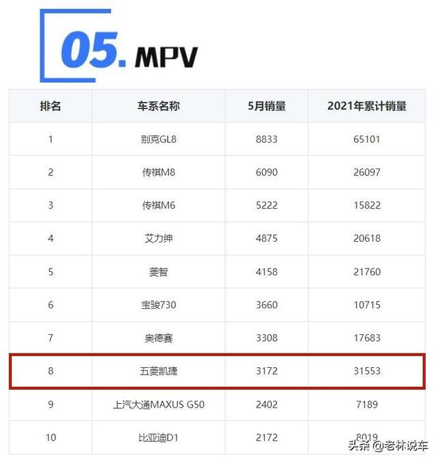 MPV市场在今年迎来了一波激发,从人们的使用需求来看,消费者的用车场景越来越多元化,从政策来看,随着三孩政策的出台,人们对6/7座车型的需求与日俱增,在两方利好因素的促使下,MPV市场在今年1-5月份累计售出47.3万辆,同比增长了37.2%,在今年5月售出了9.5万辆,同比增长了12%,因此,五菱汽车推出凯捷可以说是恰逢时机的,通过凯捷1-5月的31553辆的累计销量来看,在MPV市场上它的成绩仅次于别克GL8,超过了本田奥德赛和艾力绅以及传祺M8,可以说取得了很大成功。