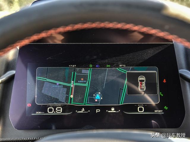 全液晶仪表使用双层设计,上层显示挡位信息,而下方则显示详细的行车信息,不过不过屏幕尺寸略小,如果能够使用窄边框,能够明显增加仪表的内容丰富程度以及高级感。
