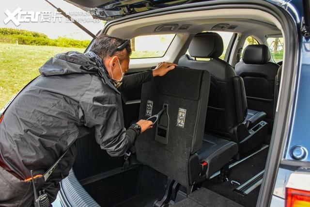 继续保持第二排座椅不动,来到第三排。虽然此时腿部与头部已经没有任何富裕空间,但是身高188cm的编辑还能进入到车内,空间表现可以说已然不错了。