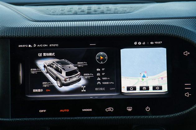中控下方的屏幕涵盖了驾驶模式切换旋钮、空调控制物理拨片和部分车辆控制功能,这样的控制形式便于驾驶员忙操作,非常便捷。
