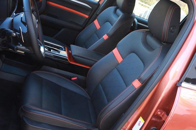 座椅采用了皮革材质包裹设计,摸起来相当柔软,并且还加入了橙色的装饰,再配以橙色缝线等工艺,让车内显得更加年轻。座椅宽大舒适,前排座椅配有电动调节、座椅加热等功能。