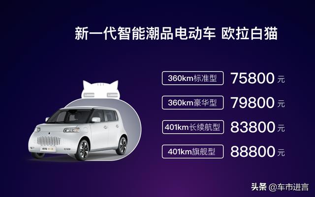 不过不管怎么样,再好的营销还是要落实到价格与产品力上。本次欧拉白猫总共上市了四款车型,价格区间为7.58-8.88万元,可以说让都市年轻人都买得起,用得起才是“王道”。