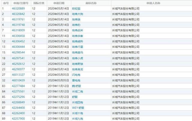 其实,长城除了注册了“大狗”之外,最近还注册了一系列关于“猛兽”以及各种“炮”的商标名称……