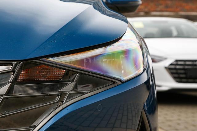 先来看外观设计。第七代伊兰特的外观造型应该是比较符合当代年轻人的审美理念的,整车的个性感、运动感比较突出,显得很激进。在官方宣称的“Sensuous Sportiness(感性运动)”设计理念基础下,年轻化特征得到很好的体现。第七代伊兰特采用了官方称之为“参数化宝石切面”的前格栅设计,看起来很有气势。