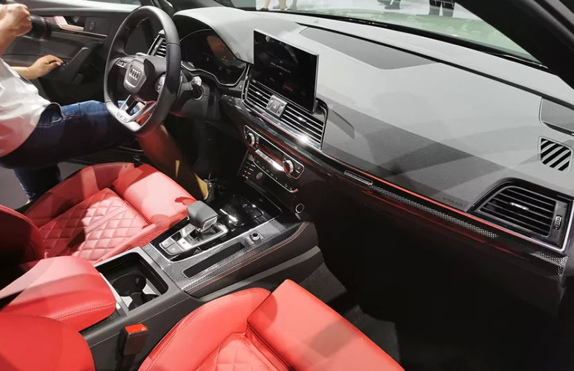 在本届粤港澳车展上,奥迪新款SQ5也正式上市,新车搭载3.0TV6发动机,最大输出功率354马力,0-100km/h加速仅需5.3秒,官方指导售价为63.28万元。新款SQ5在新款Q5L的基础上进行了黑化处理,包括中网、雾灯以及侧裙等位置,再配合RS的标识,性能感的营造还是很到位的。